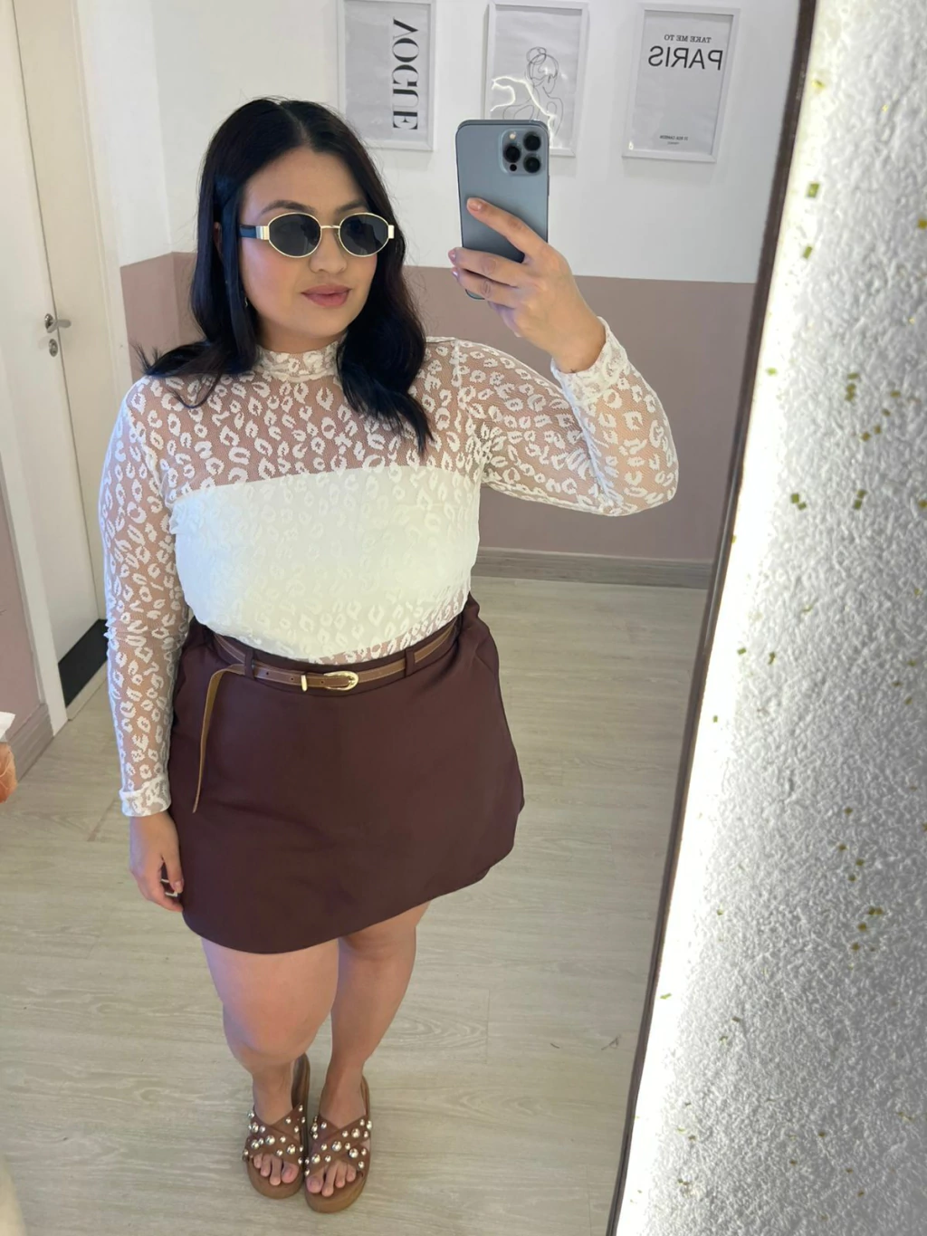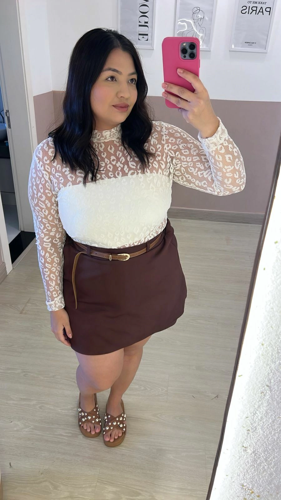Encante-se com a delicadeza e o estilo refinado desta blusa em renda de mangas longas. Transparente na medida certa, ela traz um toque de sensualidade sutil, enquanto o tecido leve e fluido proporciona um caimento perfeito. Ideal para compor produções elegantes, seja com saias, calças ou shorts, essa blusa é versátil o suficiente para criar looks sofisticados tanto para eventos noturnos quanto para o dia a dia. A transparência da renda adiciona um toque de modernidade, tornando a peça ideal para quem busca se destacar com charme e estilo. Aposte em uma blusa que equilibra conforto e elegância com maestria.