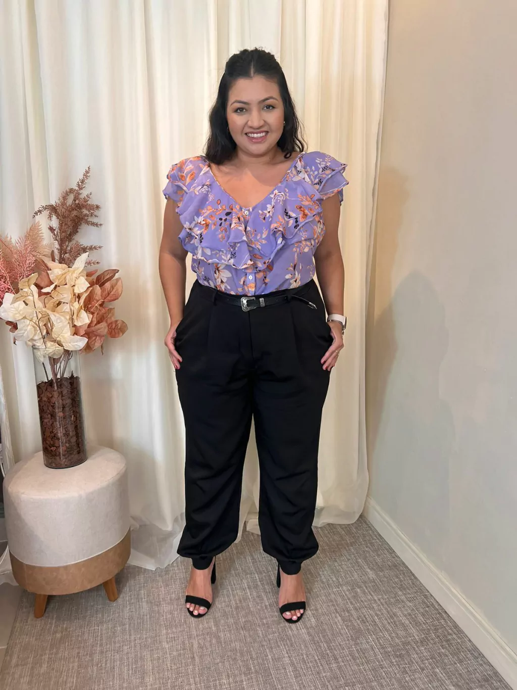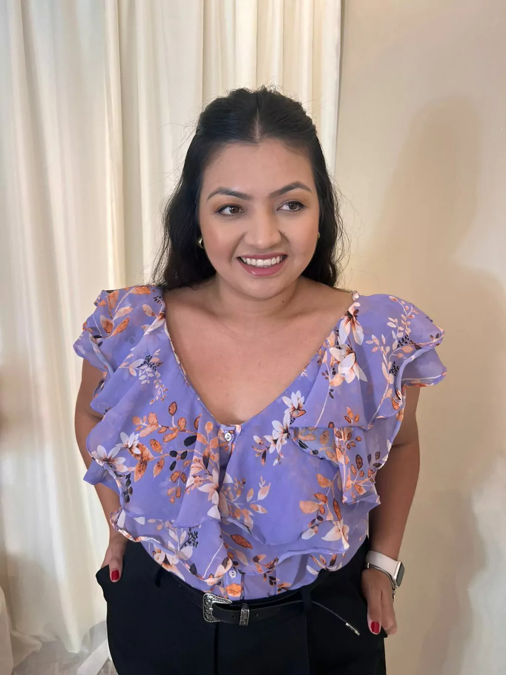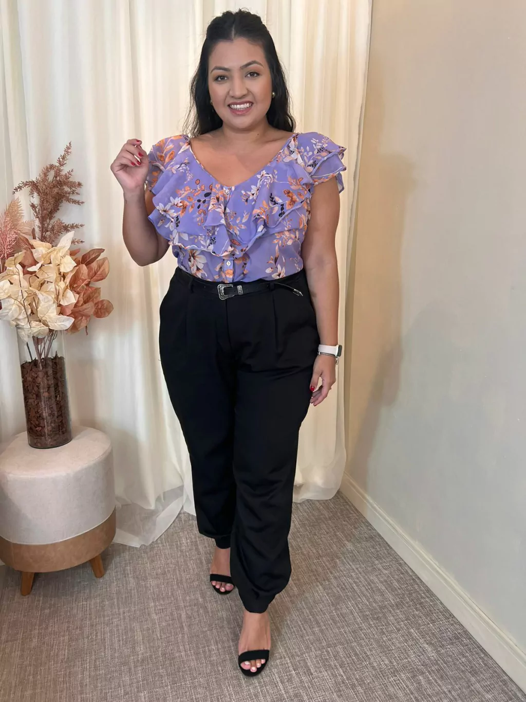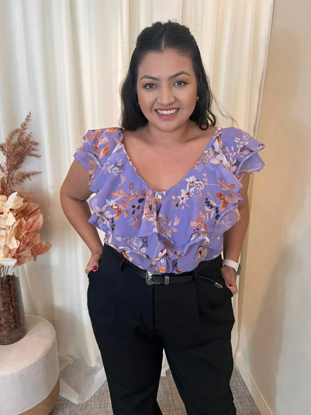 Versátil e estilosa, esta blusa pode ser combinada com saias, calças ou shorts, sendo a escolha ideal para diversas ocasiões, desde um encontro casual até um evento mais formal.
