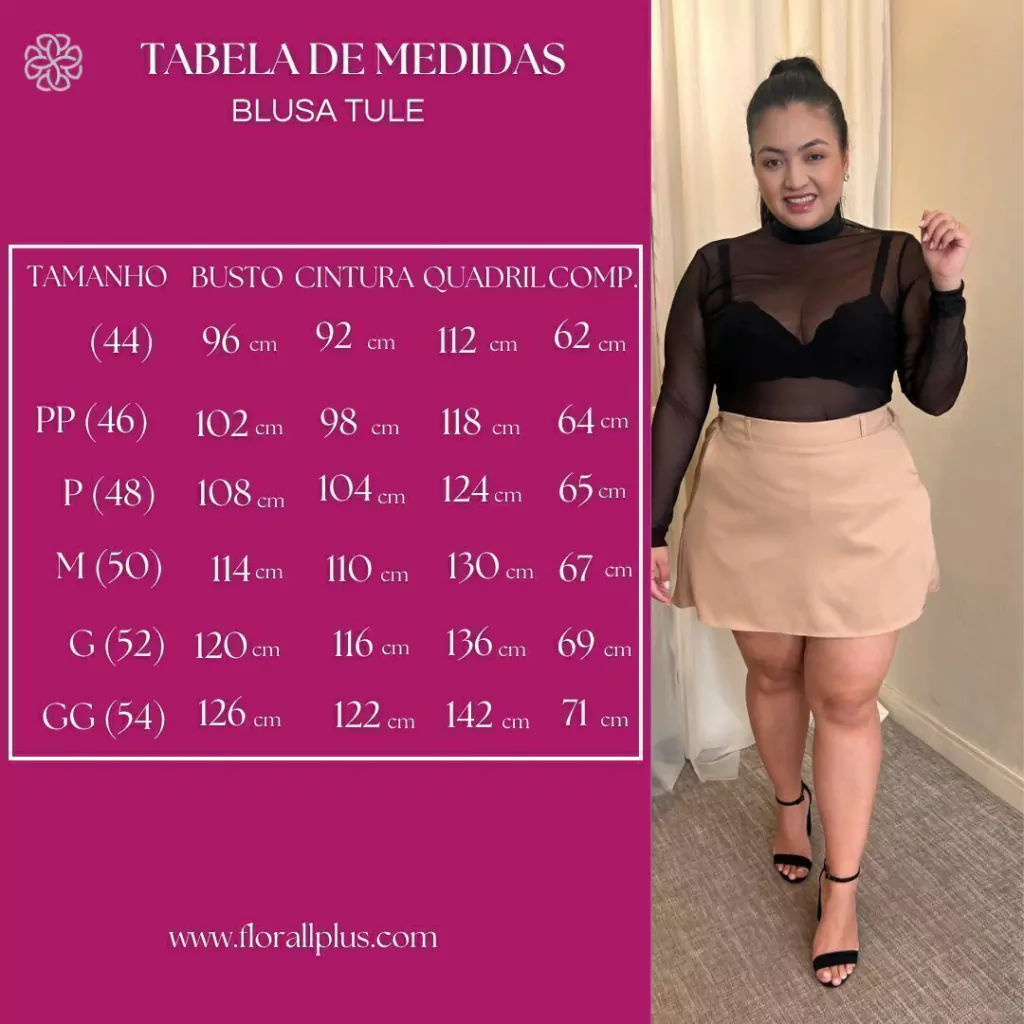 Nosso compromisso: Temos o compromisso de oferecer produtos de alta qualidade que reflitam a personalidade e o gosto individual de cada cliente. A Blusa em Tule é uma peça exclusiva, criada para você se sentir poderosa, confiante e bela.