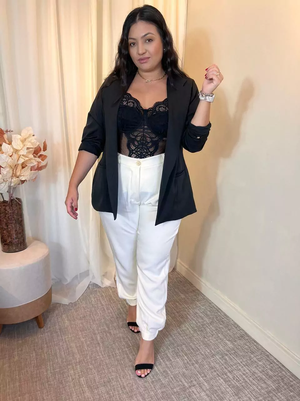 Com um corte moderno e elegante, ela abraça suas curvas de maneira perfeita, proporcionando um caimento impecável e realçando sua silhueta com muito estilo, agora com um detalhe de elástico no calcanhar. O tecido em Alfaiataria de alta qualidade e a modelagem cuidadosamente pensada garantem conforto durante todo o dia, sem abrir mão do visual sofisticado.