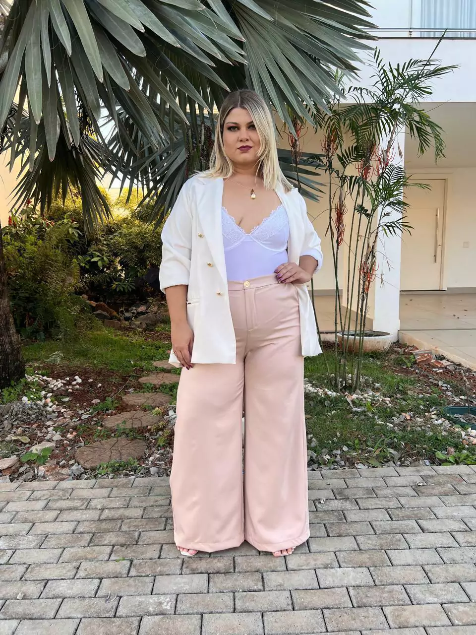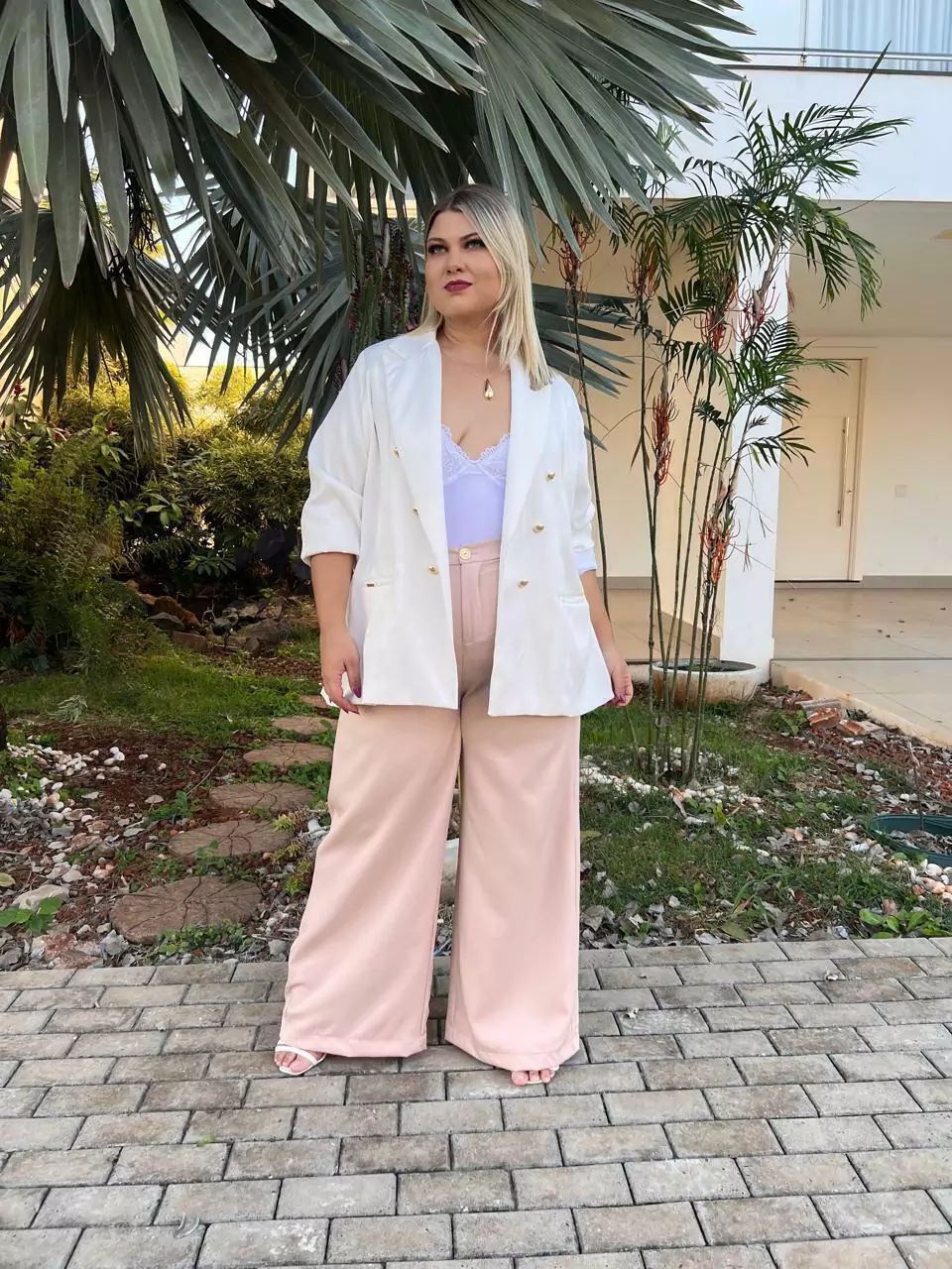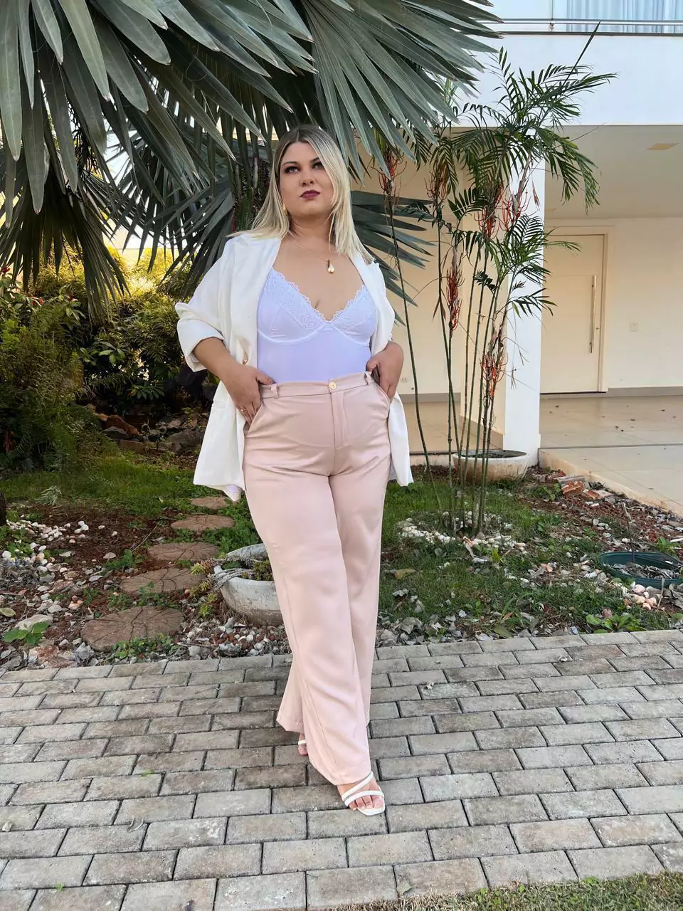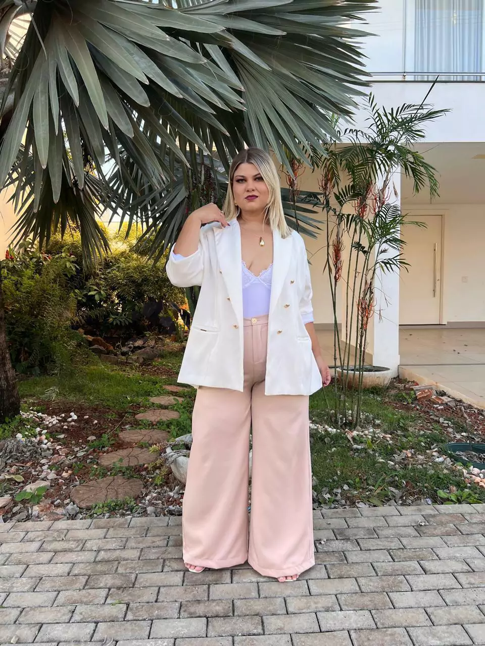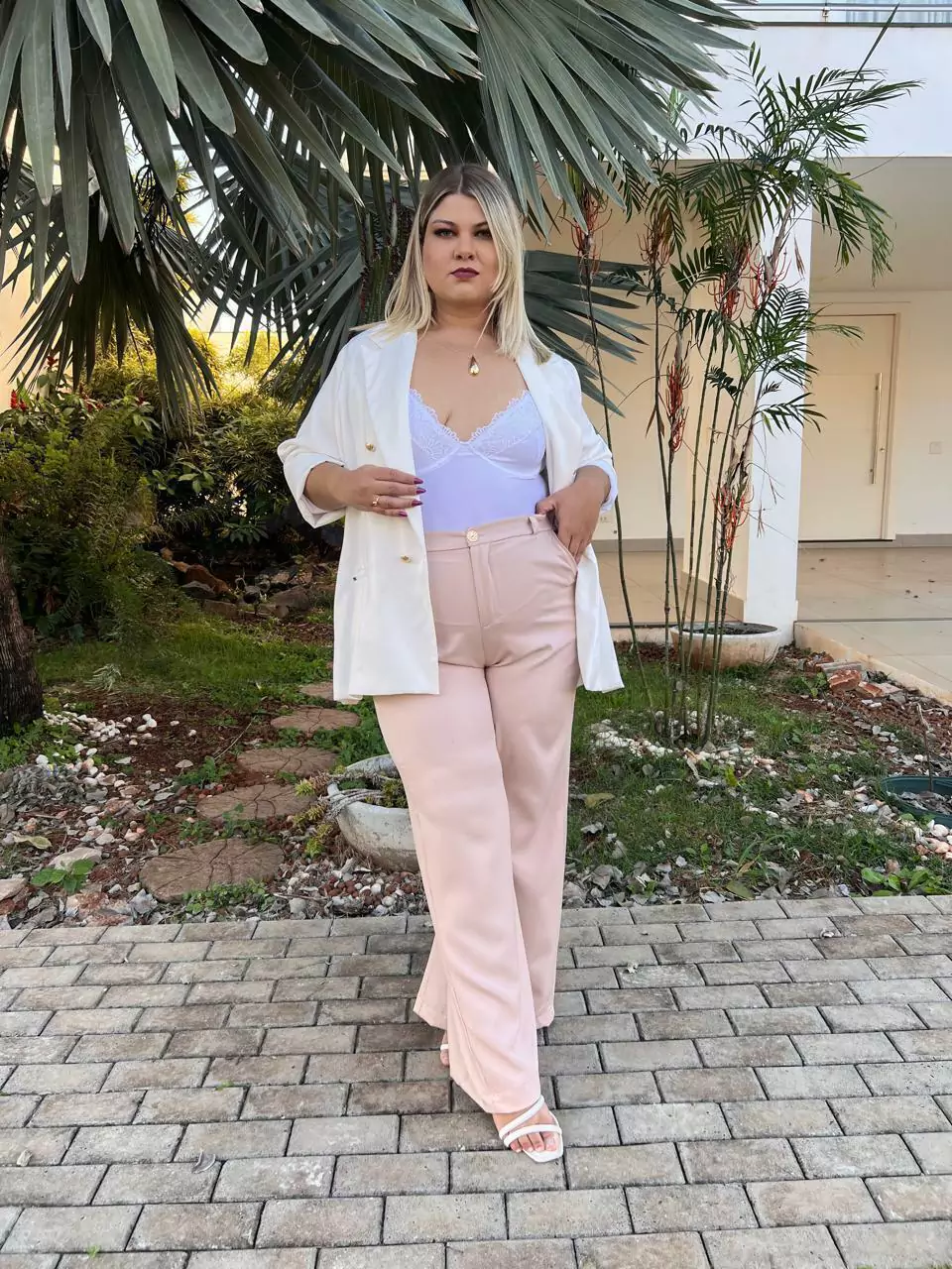 Os bolsos discretos adicionam um toque de praticidade, tornando essa calça uma opção versátil para o dia a dia ou ocasiões especiais. Seja no ambiente de trabalho ou em um evento social, a calça pantalona em alfaiataria oferece o equilíbrio perfeito entre conforto e requinte, fazendo dela um must-have em qualquer guarda-roupa moderno.