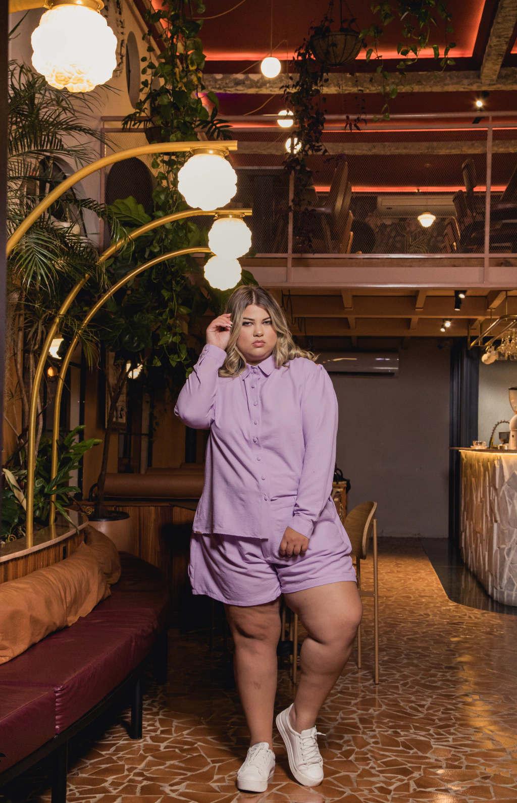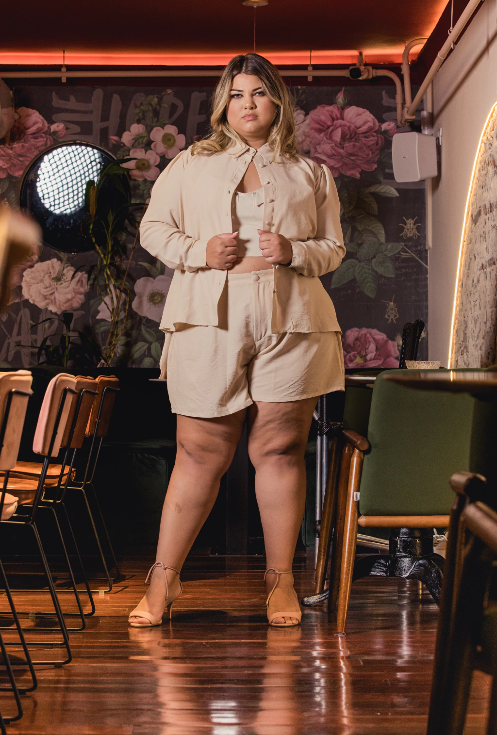 Com uma elegância deslumbrante, esse conjunto é a definição de estilo e bom gosto. A camisa manga longa possui um corte impecável, que realça a beleza feminina e transmite uma sensação de confiança única. O shorts, por sua vez, apresenta um design moderno e versátil, valorizando as curvas de forma encantadora.
