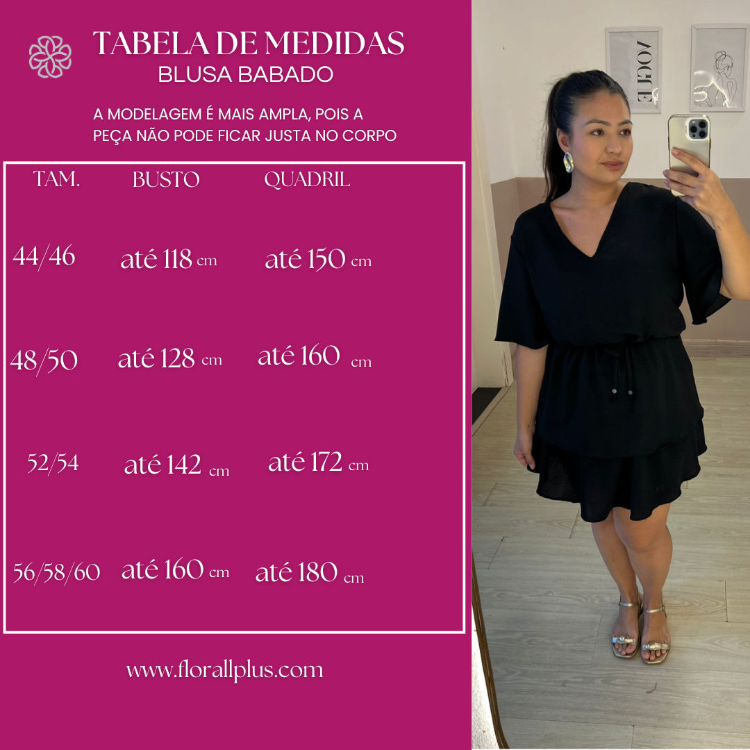 MODELO 1 USA TAMANHO 44/46 e possui as seguintes medidas: BUSTO: 106, CINTURA: 89 QUADRIL: 128