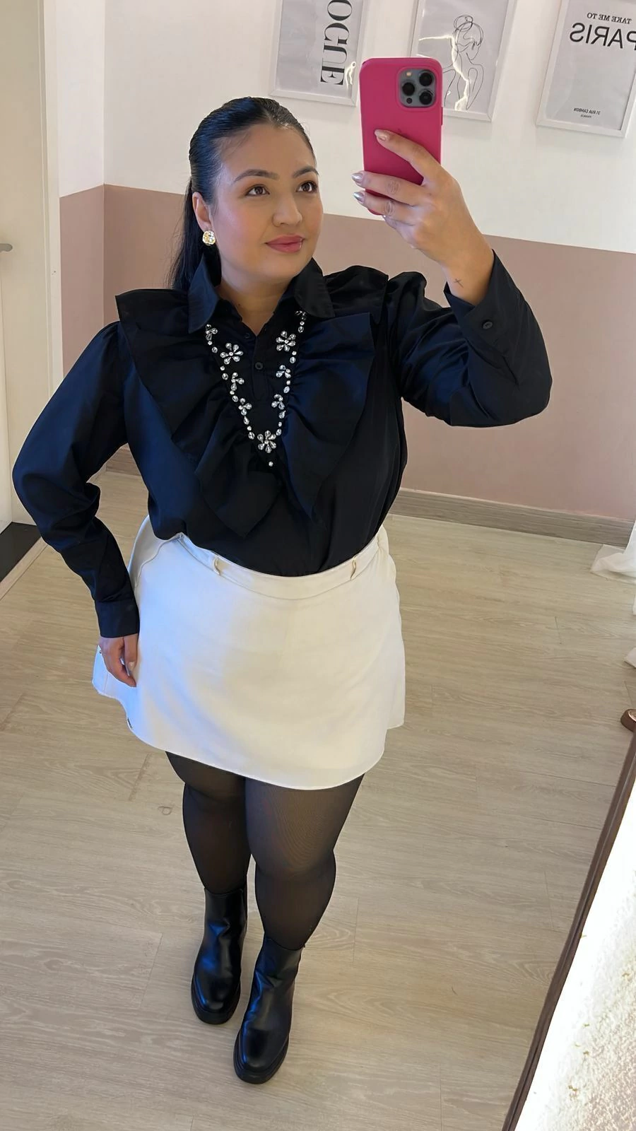 Com um design clean e corte impecável, ele é perfeito para compor looks que vão do trabalho a eventos sociais com muito estilo. A estrutura da alfaiataria garante um caimento perfeito, enquanto o formato saia traz feminilidade e movimento à peça. Ideal para quem busca uma opção moderna e versátil, o shorts saia se adapta a diferentes ocasiões, oferecendo conforto sem abrir mão da elegância. Seja para um dia de trabalho ou um passeio casual, esse é o item que vai elevar qualquer produção.