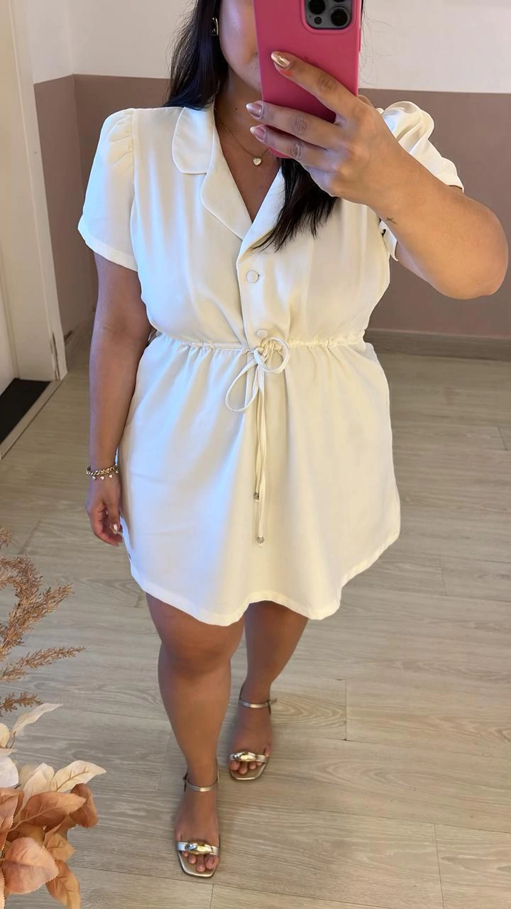 Inspirado na sofisticação dos blazers, este vestido apresenta uma lapela que evoca o estilo clássico, enquanto os botões encapados no decote em V adicionam um toque de refinamento. Com regulador na cintura para um ajuste perfeito, este vestido é uma escolha versátil para diversas ocasiões. Disponível nas cores atemporais preto e off white, além do romântico rosa, este vestido é a definição de elegância contemporânea. Comprimento finalizando acima do joelho para um visual chic e atual.