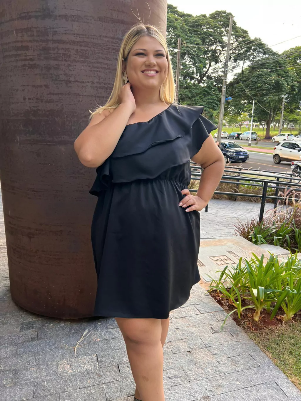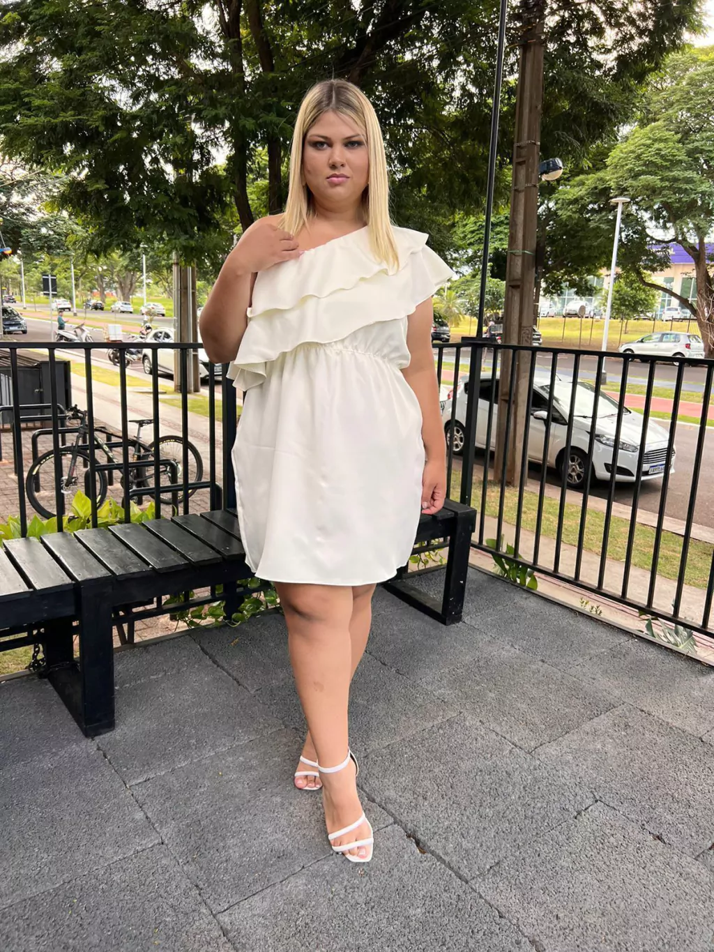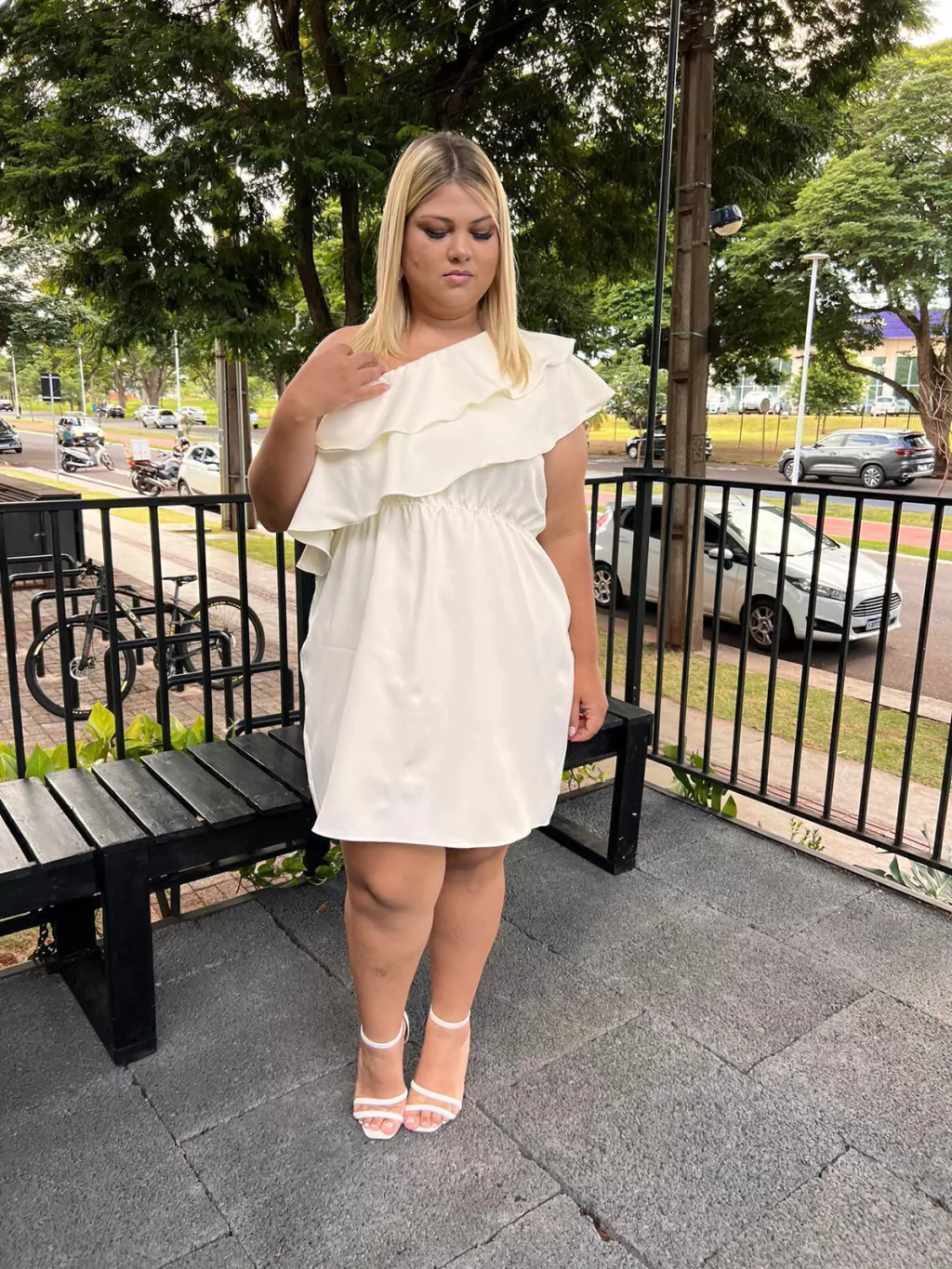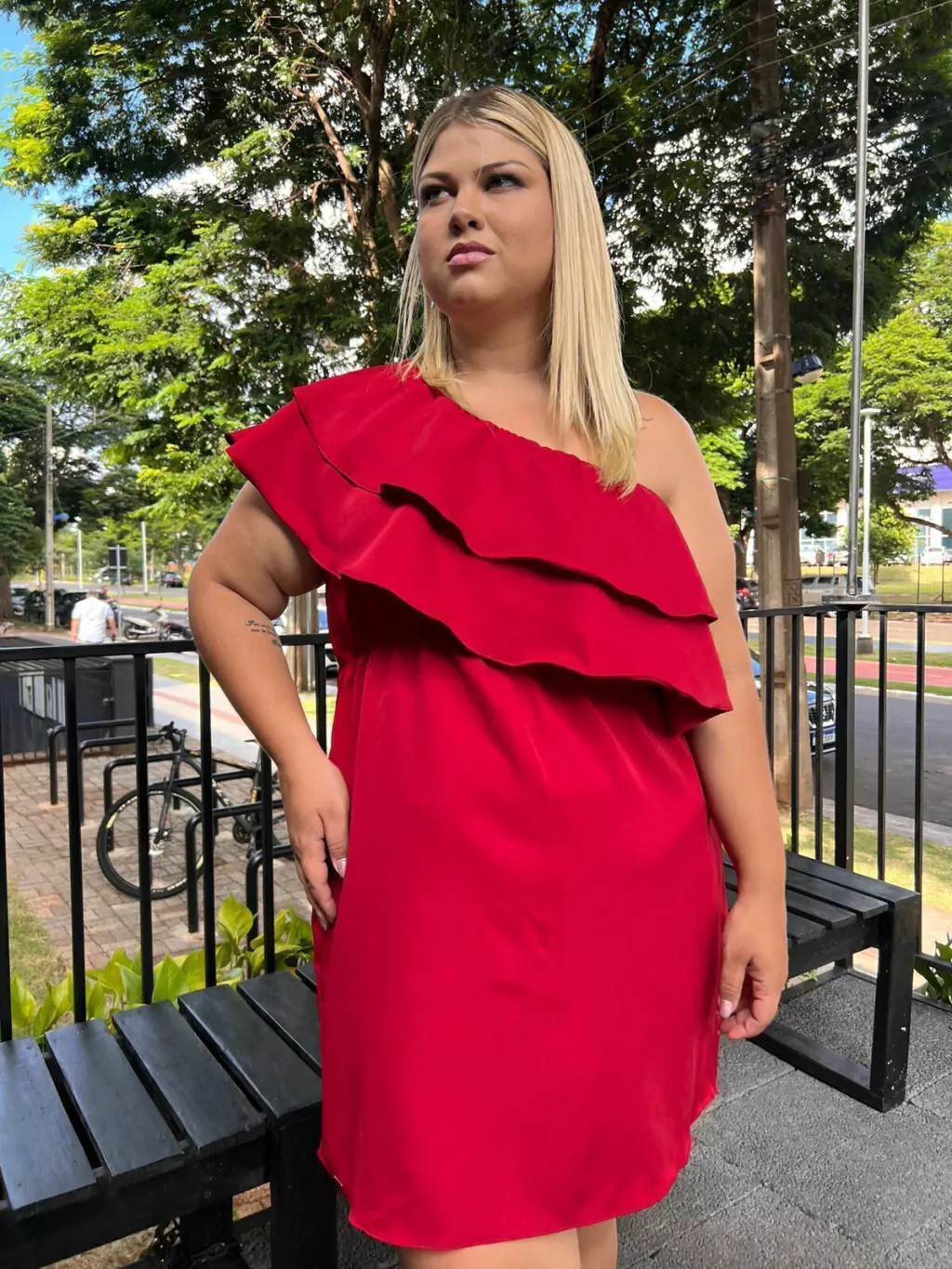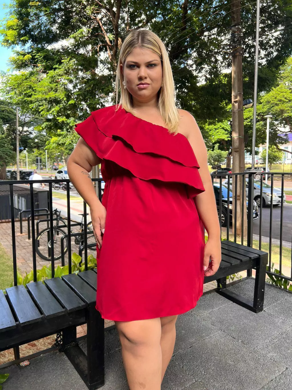 Nosso vestido Mari é um BABADO! Esse modelo é elegante, uma peça exclusiva onde os babados na parte frontal e costas trazem movimento e fluidez na sua nula manga, o vestido tem comprimento curto acima do joelho.